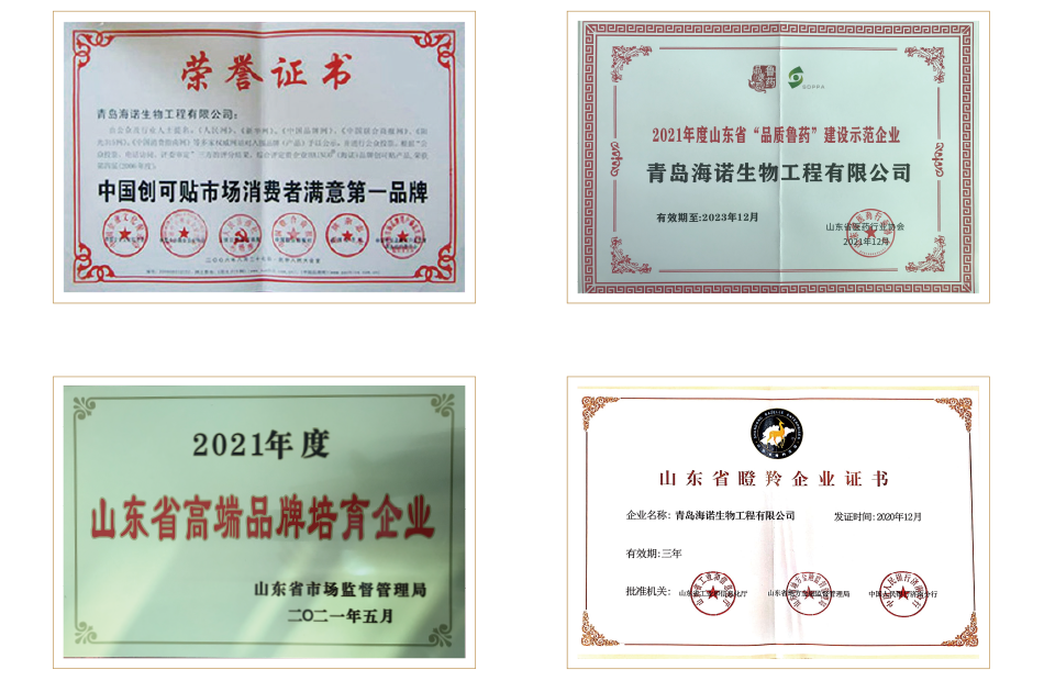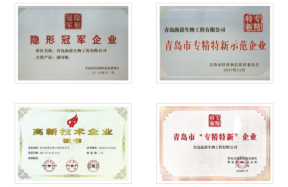 尊龙凯时-人生就是搏集团先后获得青岛市守合同重信用企业、青岛市优秀民营企业、中国医用敷料行业杰出品牌、中国优秀民营企业、中国医疗器械行业最具创新活力竞争力前三强企业、中国驰名商标、山东省高端品牌培育企业、山东省“品质鲁药”建设示范企业、国家级“专精特新”小巨人等荣誉和奖项。