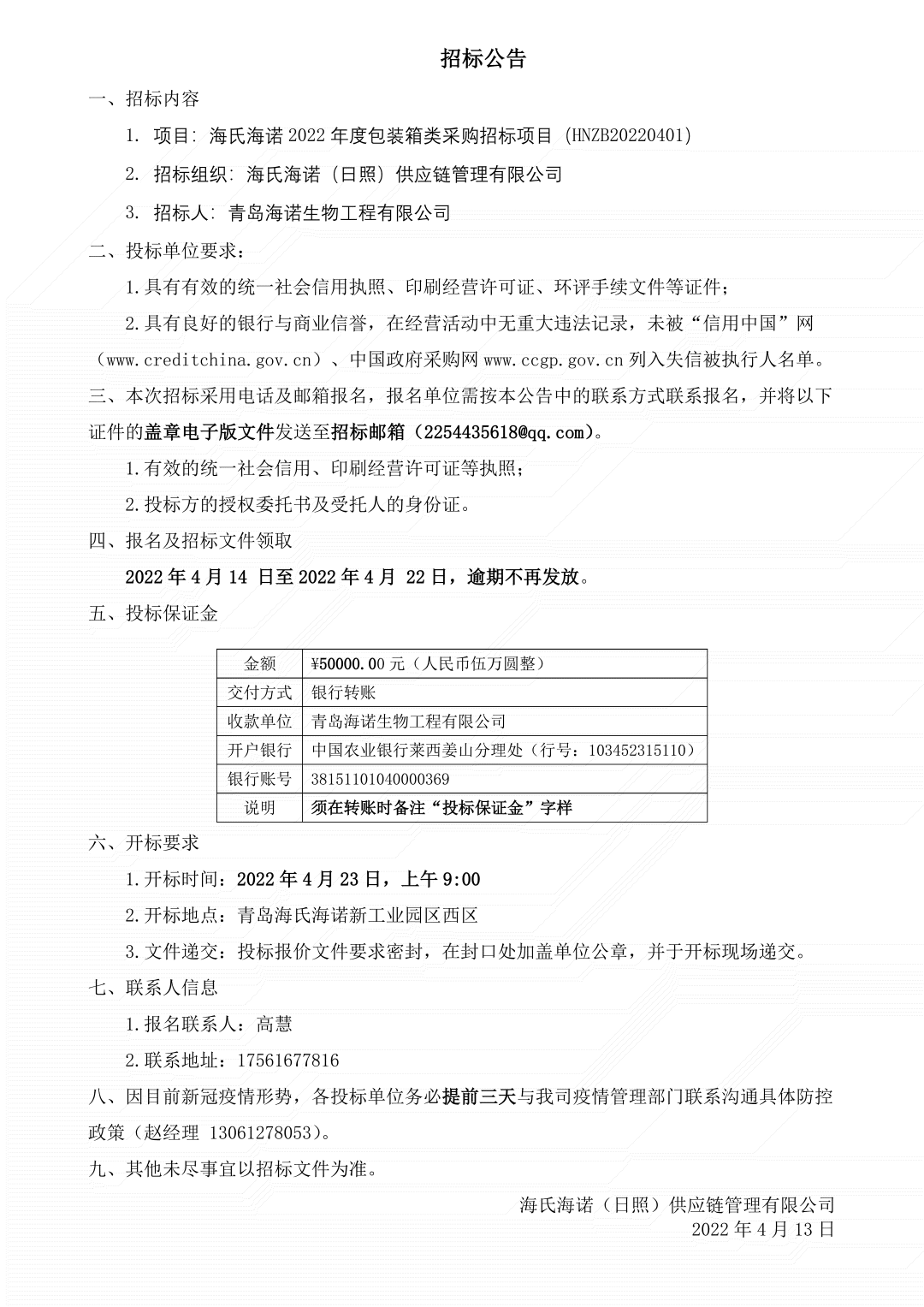 尊龙凯时-人生就是搏2022年度包装箱类采购招标项目正式开始,届时我们将秉承公正、公平、公开、透明的招标原则,期待优秀供应商的广泛参与。具体招标细节如下:
